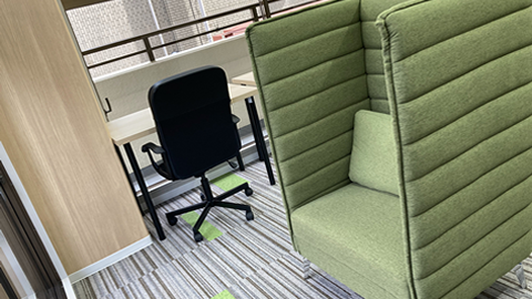 ソロワークチェアを2席ご用意。リラックスできて包まれ感があるソファー席です。